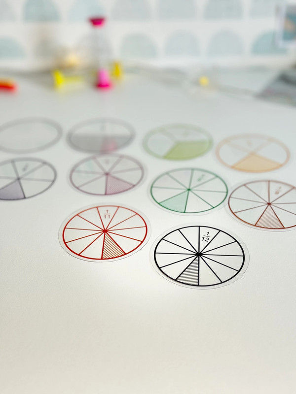Jeu Fractions simples: cartes à pinces Carrés Autocorrectif