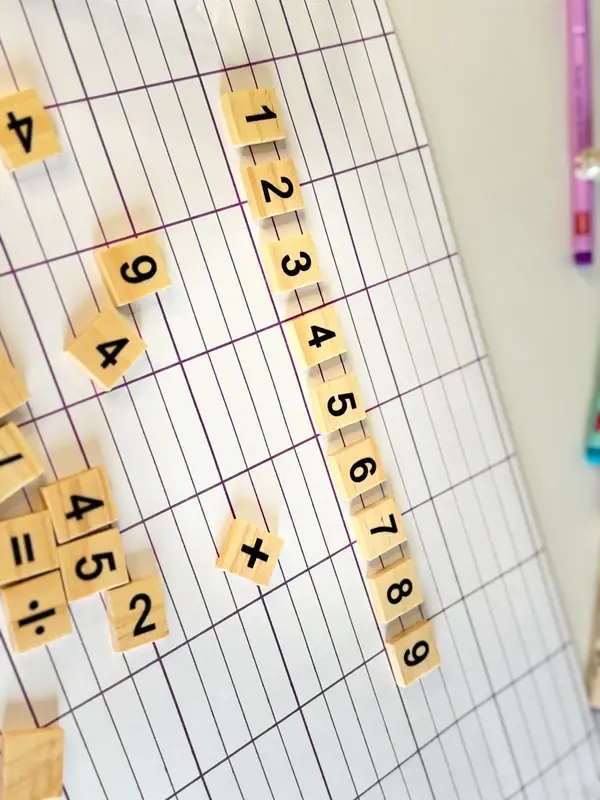 Nombres et symboles mathématiques en bois à manipuler
